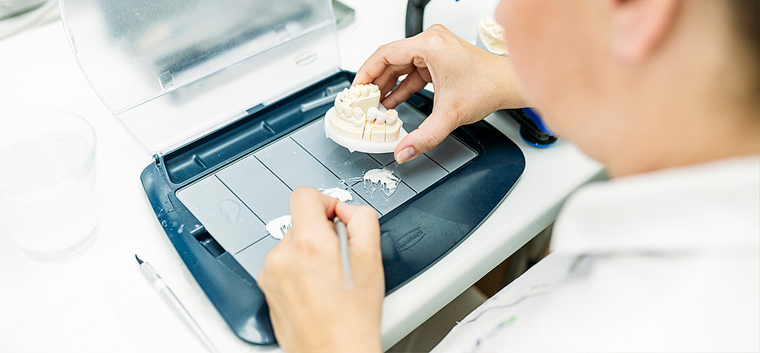 Unsere CAD/CAM-Fräsanlage ist auch umweltfreundlich, da sie den Einsatz von Gipsmodellen und Abdrücken reduziert. Wir können die Daten direkt von unseren digitalen Abformgeräten oder von Ihrem Zahnarzt übernehmen und die Herstellung von Zahnersatz und anderen zahntechnischen Arbeiten direkt in unserer Praxis durchführen.